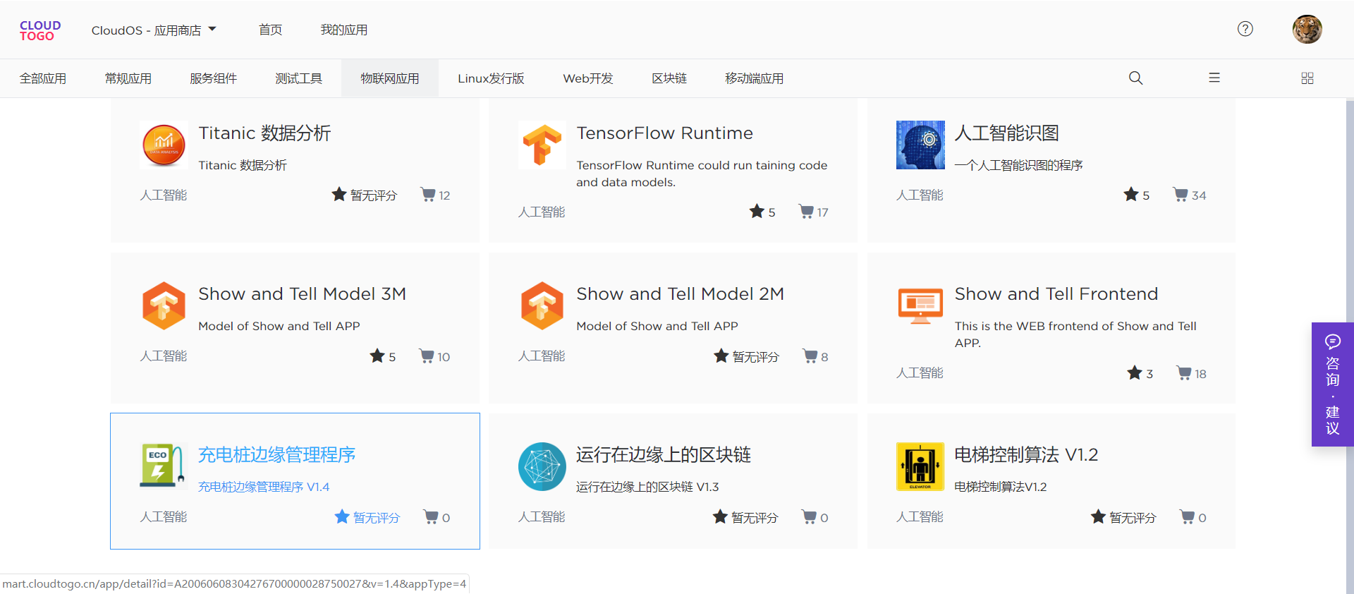 以物联网应用商店为中心,构建一个开发者社区,逐渐丰富商店内各类物联网模块和应用,可以实现充分的知识共享和成果复用,最终形成生态效应。基于此种场景,也可以实现专有平台,支撑对各类供应商的物联网项目开发测试和管理工作。