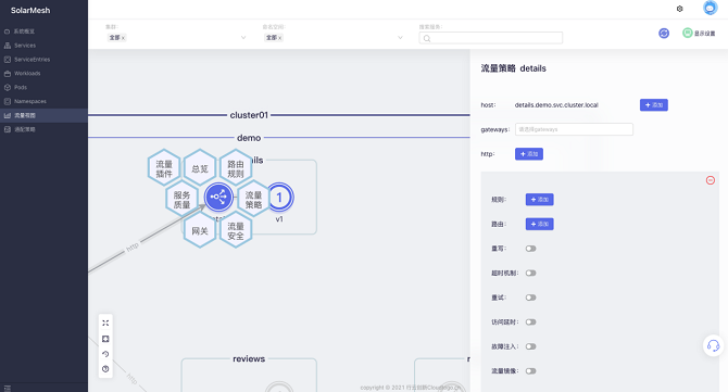 流量策略可以针对服务节点接受的流量进行重写、流量镜像,也可以设置入栈流量的超市机制、重试机制以及特定场景模拟下的延时访问和故障注入。