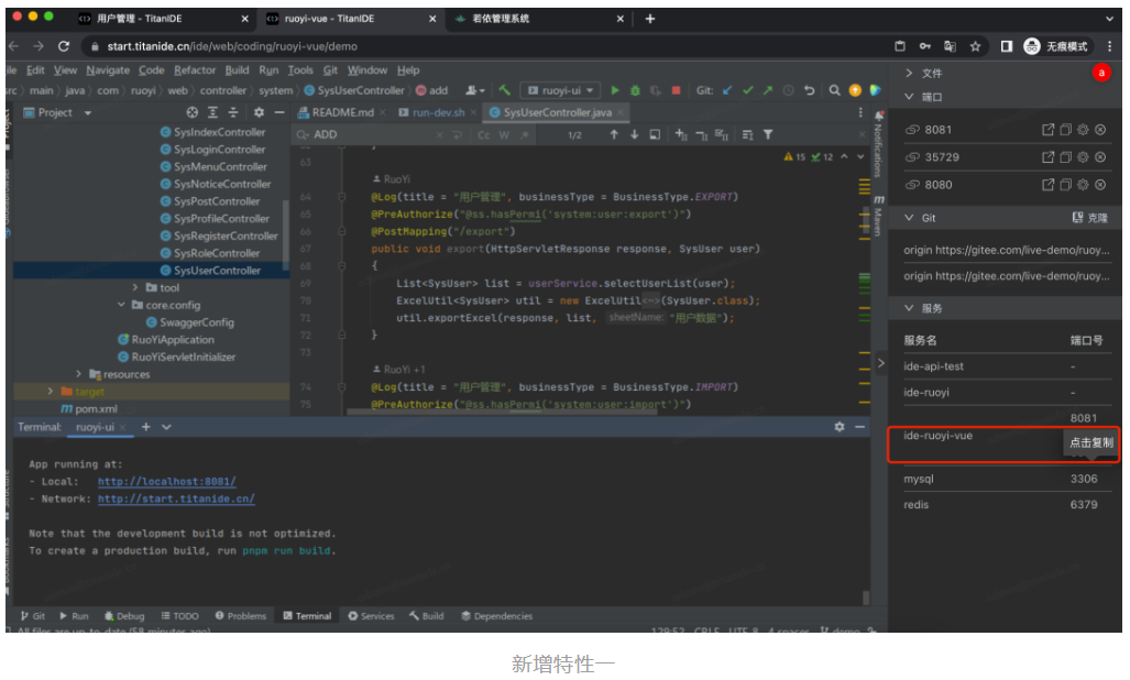 1. 支持同工作空间下的应用名称、服务名称、端口号显示和复制: