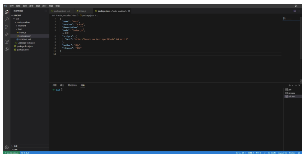 很显然我们得到了正确的结果,一个是部署在 NPM 私有仓库的 test 包,一个是从上游 NPM 源安装的 moment,那么只要我们的这个项目一直在 TitanIDE 中运行,它就可以一直被公司内部的开发人员所使用。