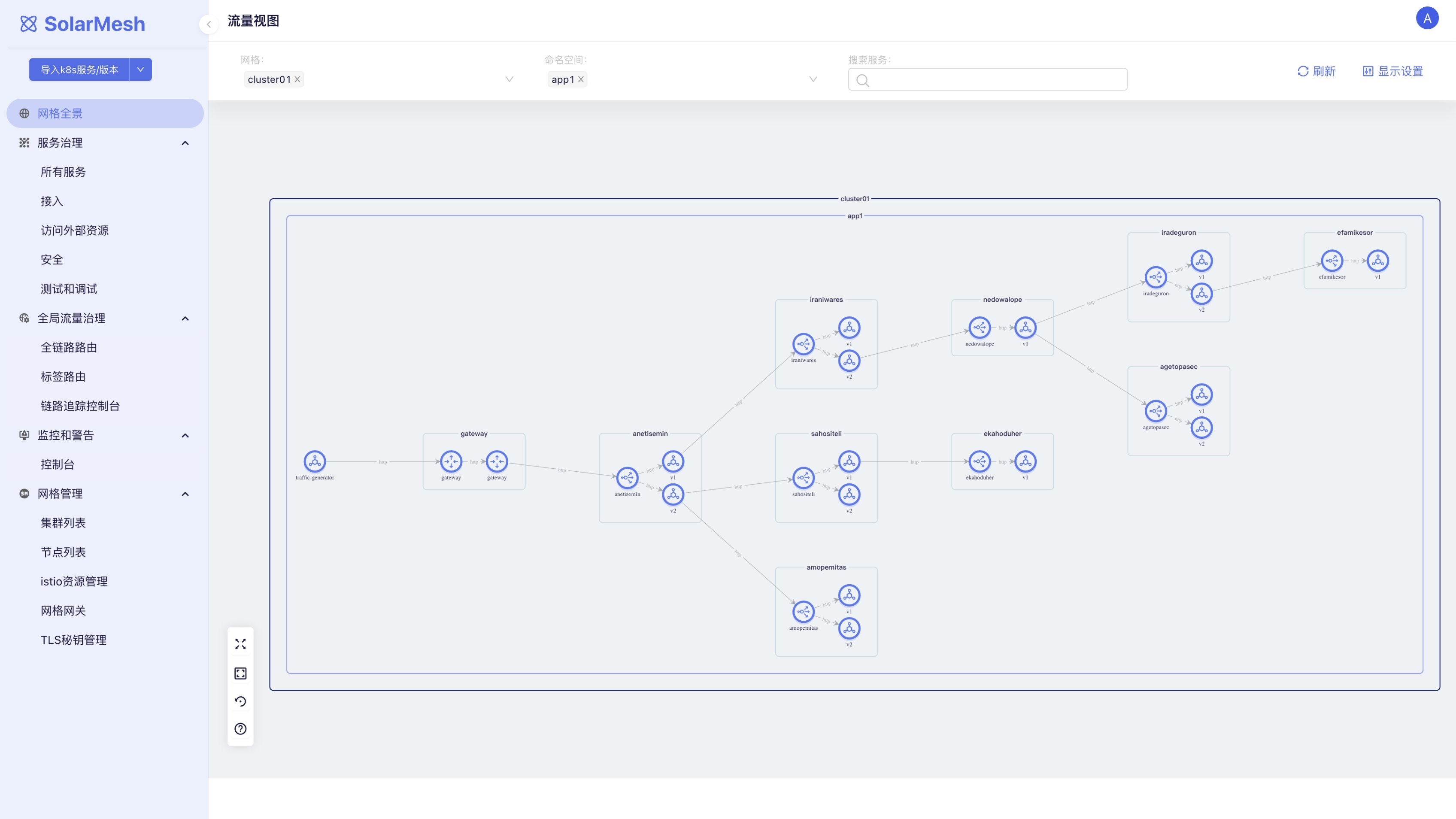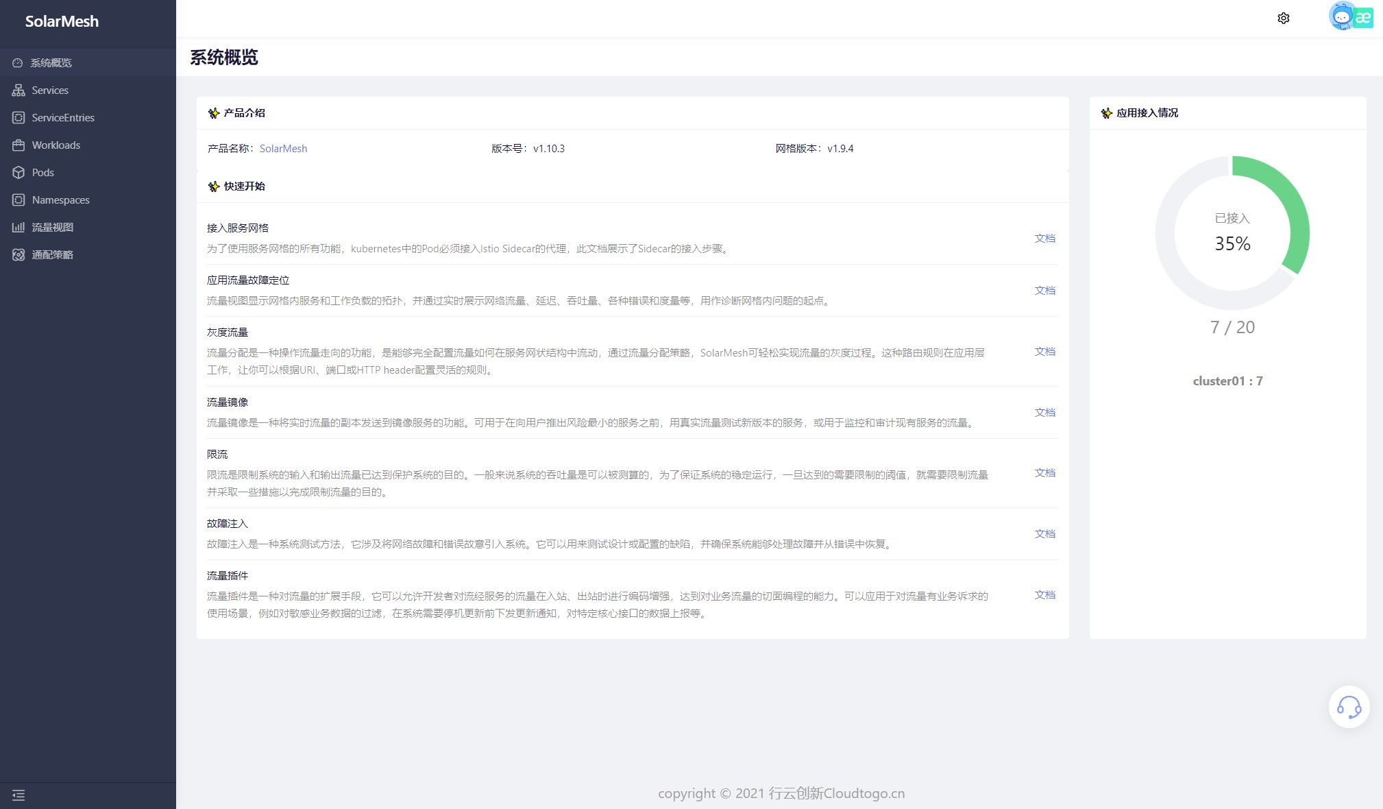 SolarMesh是今年会创新推出的流量治理平台,它基于Istio,为部署在K8s集群上的应用提供全面的流量治理能力。