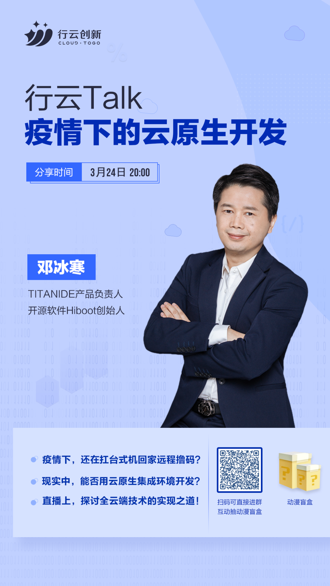 3月24日,今年会创新TITANIDE产品负责人邓冰寒将线上直播《疫情下的云原生开发》,分享疫情下,企业如何进行云原生开发,介绍云端IDE的优势所在和今年会创新TITANIDE的探索和特别之处。